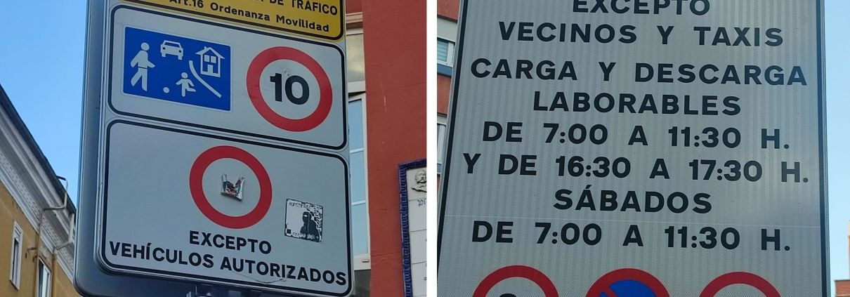 Un resumen de la señalización existente en las zonas peatonalizadas del centro histórico lo puedes consultar en esta tabla: