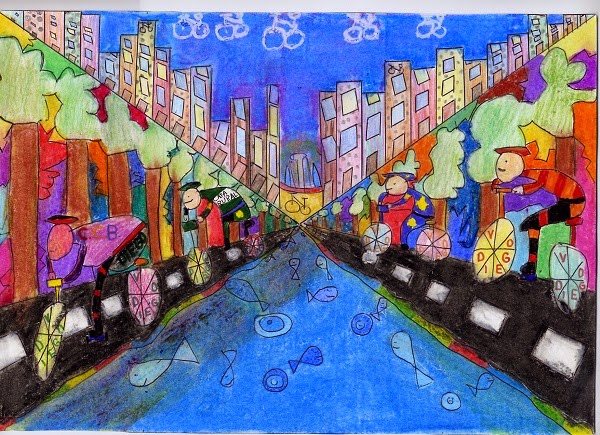 Pensar en las bicis y en la ciudad les evoca inevitablemente sosiego, alegría, convivencia, disfrute, color. En la mayoría de los dibujos entregados y también en la mayoría de los premiados, vuelven a desfilar los grandes iconos de la movilidad en bici en la ciudad: carril bici, bicis en parques y espacios compartidos con peatones, seguridad para los ciclistas, respeto entre ciclistas y peatones, etc. En la siguiente presentación puedes ver los dibujos finalistas.